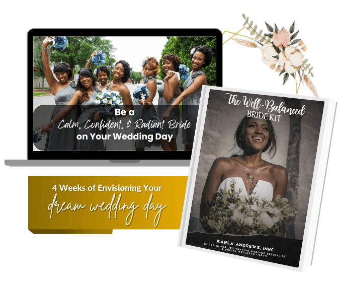 The four-week Well-Balanced Bride Kit is designed to help you envision your dream wedding day without feeling overwhelmed. This is for brides who want to look radiant, calm, fit, and glowing to be gracious, exude energy, and feel their absolute best.